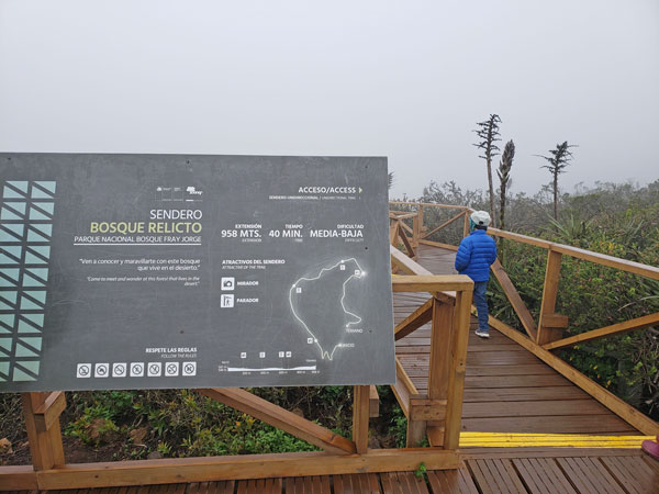 El sendero dura aprox 40 minutos, parte en un ecosistema semiárido y termina en un bosque valdiviano, es impresionante el cambio! Precioso! Además se puede hacer con silla de ruedas y tiene lectura braille.